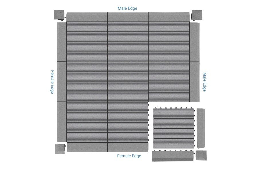 Composite Deck Tiles are easy to install. Installation of these floor tiles typically includes: