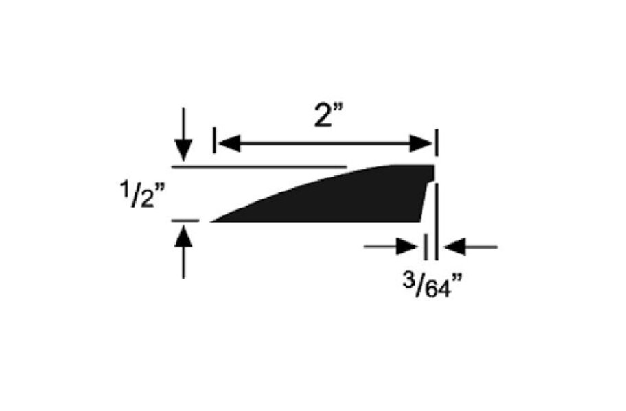 Our 1/2" Rubber Flooring Ramps are provide safe transitions from a taller surface to a much lower floor surface. This ramp reducer is designed to be used with flooring that is 1/2" thick and gives a smooth finish to the lower flooring surface. 1/2" Rubber Floor Ramps can be easily installed with a polyurethane adhesive and can be cut to fit with a sharp utility knife. These reducer strips are ADA compliant. Material - Our ramps are constructed of homogenous PVC plastic. Color - Black, Length - 12' long. Width - 2". Thickness - 0.5", Weight - 5.5 lb per 12' piece.