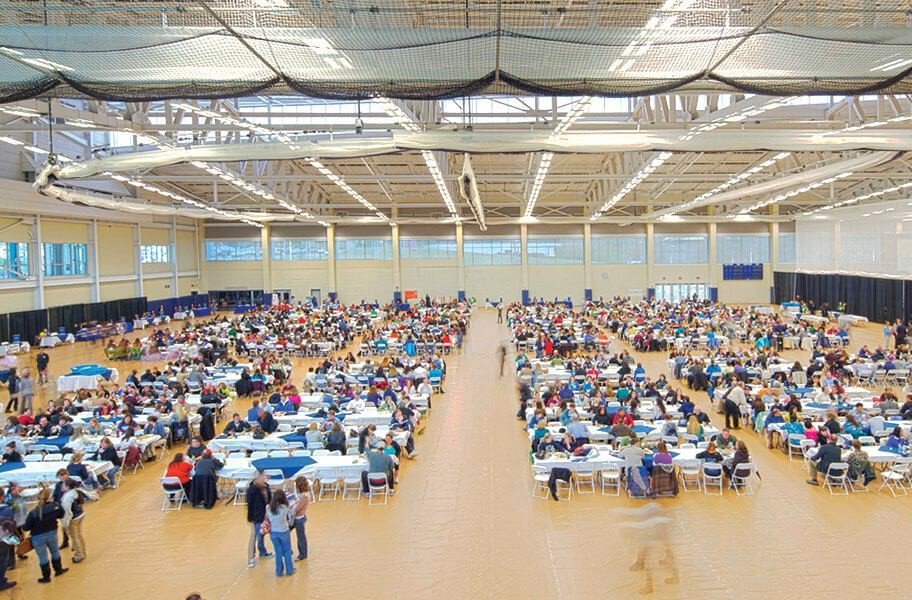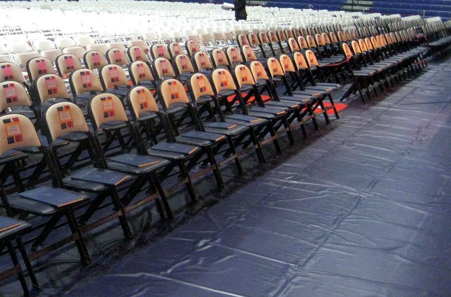Gym Floor Covers are easy to clean and pack up after events, taking two people a half hour or less.
