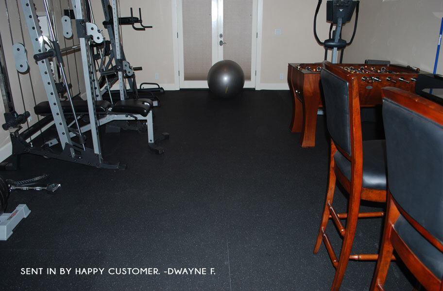 Recommended Uses: Our Eco-Flec Rubber Rolls are a great rubber flooring solution for any home gym or commercial gym and are commonly used as flooring in basements, as fitness flooring, as underlayment, as flooring in walkways, and anywhere a non-slip flooring option is desired. Rubber underlayment can stain some vinyl flooring and linoleum over time. When using with dance floor rolls we recommend choosing black dance rolls.