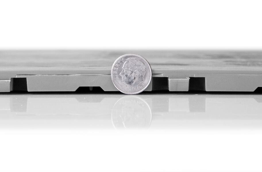 These easy-to-sanitize Indoor Basketball Court Tiles are also water-resistant, stain-resistant, and mold/mildew resistant. For added comfort under your new sports flooring, we recommend using our rubber underlayment. This adds desirable bounce and spring, providing athletes with ample shock absorption and enhanced protection from injuries. An impressive 7-year warranty backs our Indoor Basketball Court Tiles. Tiles are approximately 3/8" thick.