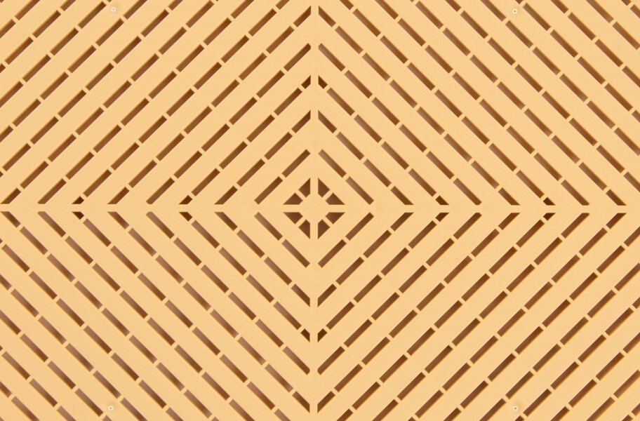 Installation of these floor tiles typically includes: Clean your sub floor so that it is free of all dirt, dust, grease, or other foreign material. When installing the hard plastic tiles, we recommend starting in the front left corner of the room and working your way out from there. Make sure the female side (loops) of the tile is facing away from the wall. After filling the left wall with tiles and the adjacent wall, proceed to fill the rest of the room with whole tiles. When you come up to a wall or object, don’t worry. Just measure the area and cut the tiles with a tile cutter or a power saw with a fine-toothed blade and put the trimmed tiles into place. When trimming the tiles into place, make sure you leave about a 3/4” space between the tiles and the wall or obstruction. Once the tiles are in place, you can then snap in the edge pieces, if you purchased them.